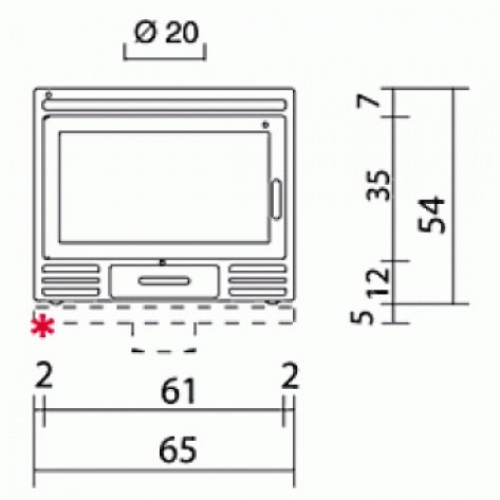 Каминная топка с плоским стеклом и принудительной вентиляцией (V).
