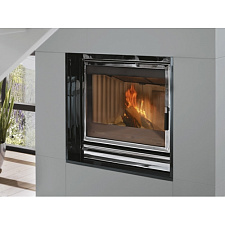 Термостойкость стекла до 800 гр Ц., в зависимости от модели топки, возможно применение двухстороннего или самоочищающегося стекла. Дымовая труба проходящая через длинный шибер для дополнительного теплого воздуха из газов - экономия на каждый день