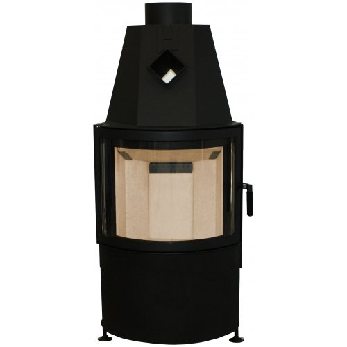 Сферическая дверка имеет боковое открывание, при горении дров ее стекло обдувается потоком воздуха для препятствования осаждению сажи.