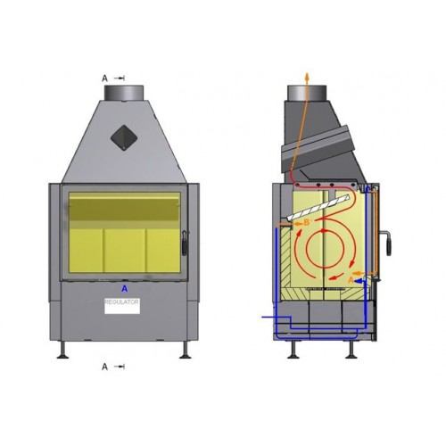- Трехуровневая подача воздуха в топку извне — система Jet Stream - воздух поступает в топку через зольник и на стекло дверцы, образуя воздушный занавес и в дымоход топки для обогащения кислородом зоны, в которой проходит процесс догорания отходящих топочных газов.