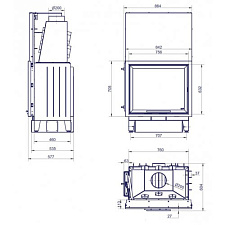 Термостойкость стекла до 800 гр Ц., в зависимости от модели топки, возможно применение двухстороннего или самоочищающегося стекла. Дымовая труба проходящая через длинный шибер для дополнительного теплого воздуха из газов - экономия на каждый день