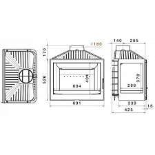 Также особенностью каминных топок KAWMET является наличие встроенной шиберной заслонки с блокиратором дверцы.*