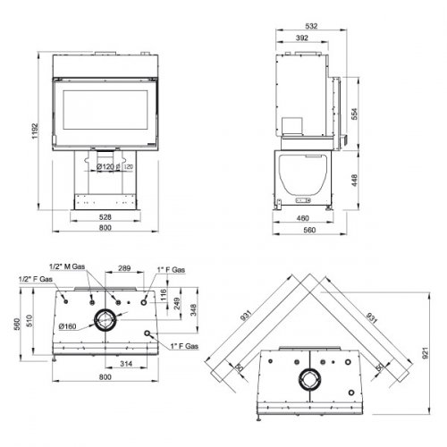 - Диаметр дымохода, : 160 мм