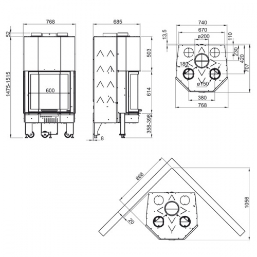 • Диаметр дымохода, мм: - 200