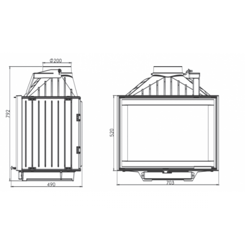 Nordflam ELBRUS - чугунная каминная топка от польского производителя. Она имеет прямое термостойкое стекло и боковое открывание дверцы. Оборудована шиберной заслонкой, зольным ящиком, двойной задней стенкой и дефлектором.  Можно регулировать подачу воздуха в топку.