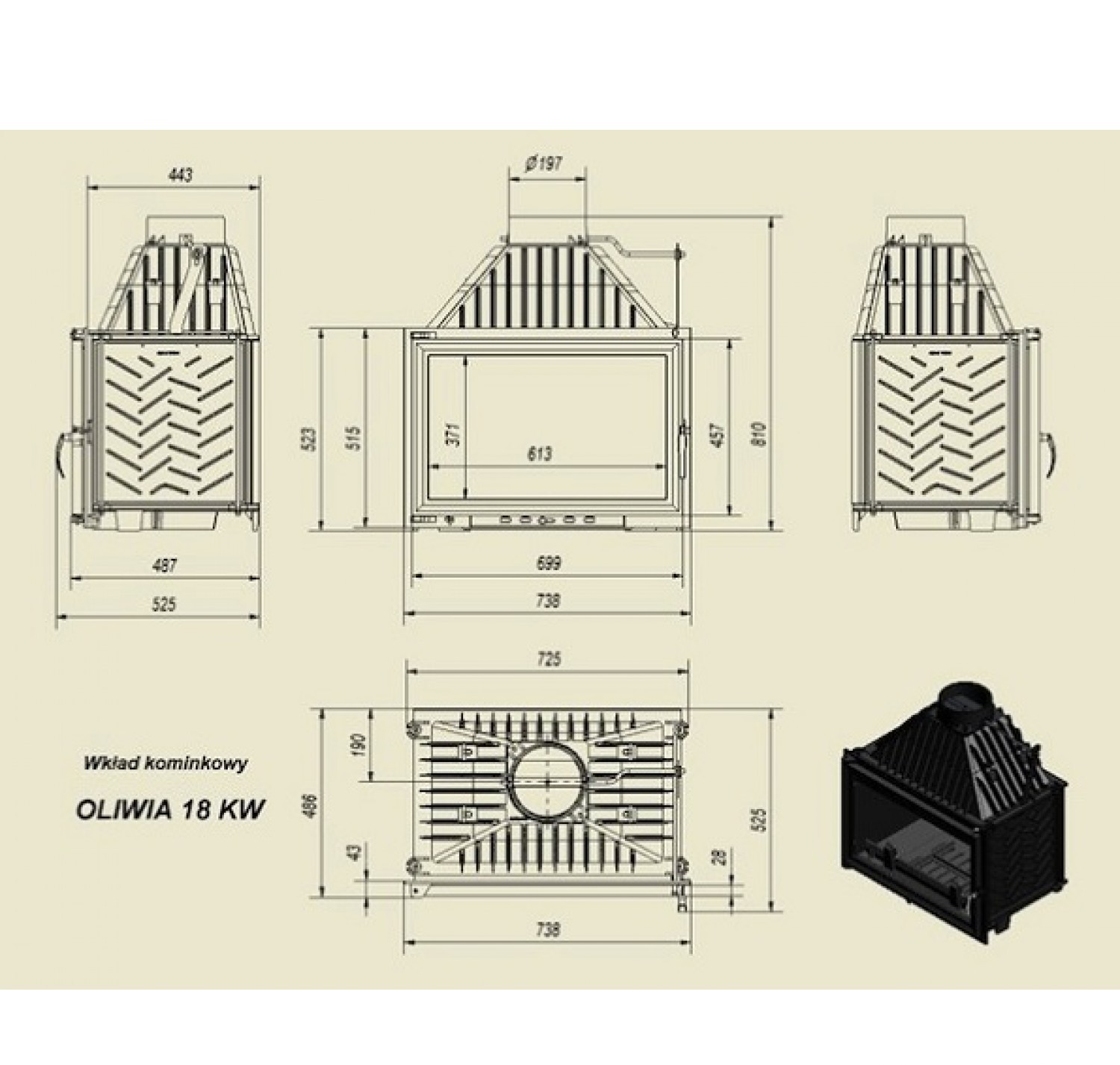 Oliwia— чугунные топочные камеры польского предприятия Kratki, которое производит большой ассортимент каминной продукции. Отопительный прибор большой мощности— топка серии Oliwia— предназначена для отопления более 150 кв.м. жилой площади. Материал, изкоторого изготовлена топка— термостойкий чугун с толщиной стенок 8 мм. Увеличению теплообмена способствует высокая степень ребристости корпуса. Встроенный демпфер позволяет регулировать подачу воздуха, влияя наинтенсивность горения дров. Преимущества топок серии Oliwia отKratki: Топка закрытого типа снепрерывным горением; Топливо— твердая древесина, коричневый уголь; Корпус топки выполнен изтермостойкого чугуна с толщиной стенки 8 мм; Высокая степень ребристости стенок увеличивает полезную площадь; Высокий дымосборник, присоединение дымоход сверху; Термостойкое стекло Robax (выдерживает высокую температуру); Встроенный демпфер; Удобная ручка, которую можно снимать; Держатель для дров, декоративная задняя панель.