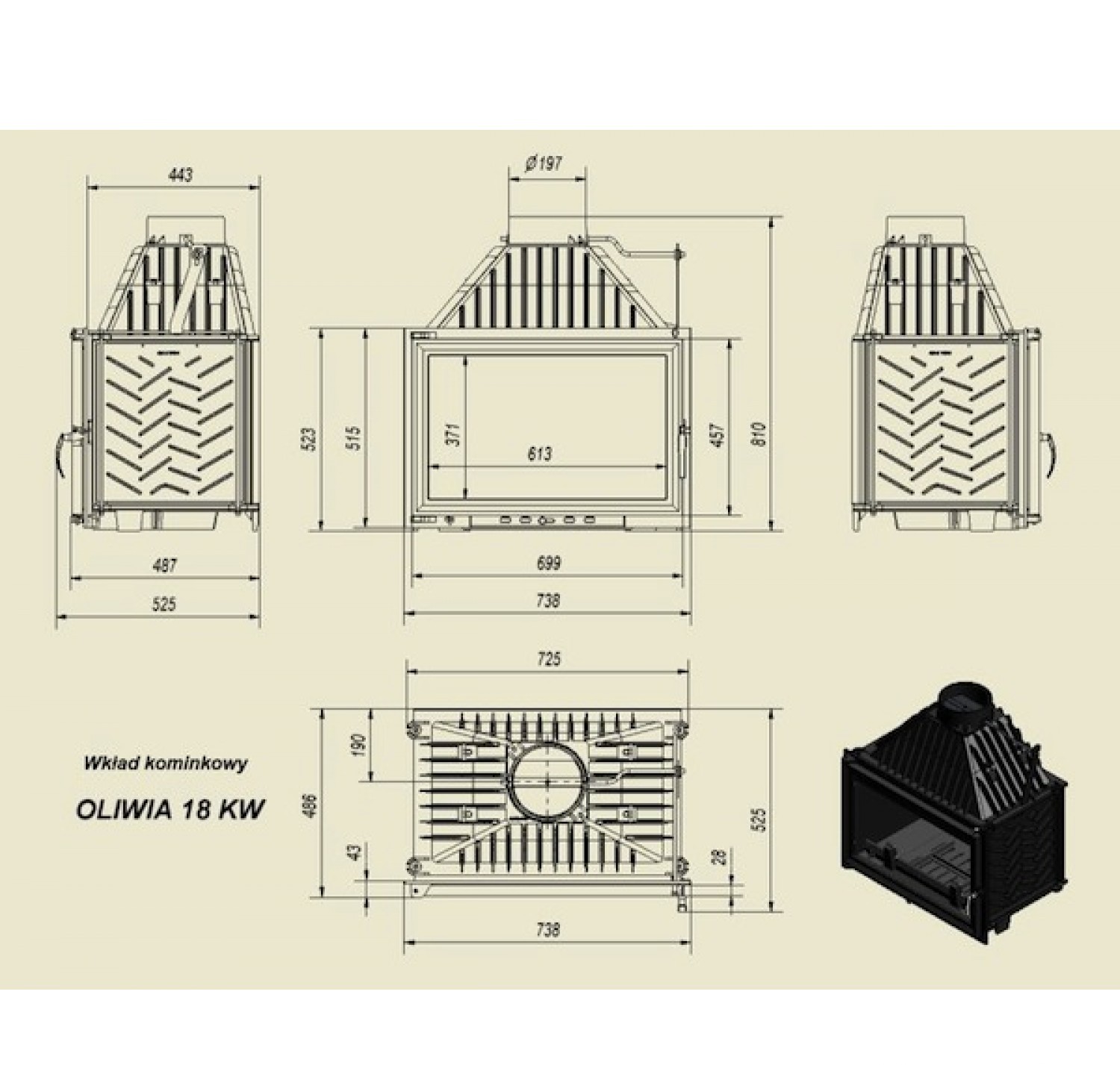 Oliwia GLASS (двойное стекло)— чугунные топочные камеры польского предприятия Kratki, которое производит большой ассортимент каминной продукции. Имея все достоинства базовой комплектации топки, представленная модель Oliwia GLASS имеет систему двойного остекления дверцы топочной камеры. Современные чугунные топочные камеры закрытого типа— это разновидность отопительного прибора, который может дополнить, авнекоторых случаях иполностью заметить систему отопления. Oliwia GLASS— топка довольно высокой мощности схорошим КПД, которая работает натрадиционном топливе— дровах. Преимущества топок серии Oliwia GLASS отKratki: Топка закрытого типа снепрерывным горением; Предусмотрено двойное остекление дверцы; Топливо— твердая древесина, коричневый уголь; Корпус топки выполнен изтермостойкого чугуна с толщиной стенки 8 мм; Высокая степень ребристости стенок увеличивает полезную площадь; Высокий дымосборник, присоединение дымоход сверху; Термостойкое стекло Robax (выдерживает высокую температуру); Встроенный демпфер; Удобная ручка, которую можно снимать; Держатель для дров, декоративная задняя панель.