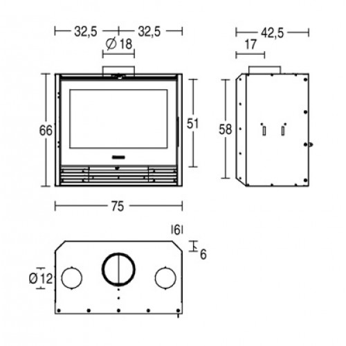 • Проем:  Дверца из эмалированной стали с жаропрочным стеклом, выдерживающим температуру до 750°, с самообдувом. Дверца на петлях.