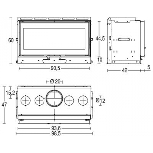 Отопление:  Естественная конвекция, лучистый обогрев и дополнительная вентиляция с искусственной тягой через систему Multifuoco