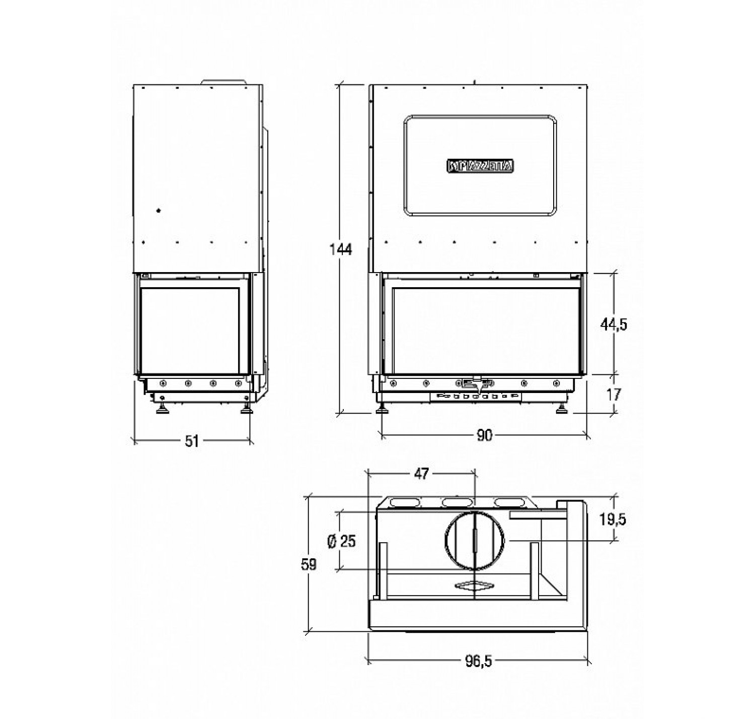 Каминная топка Piazzetta ME 90/44 Sx произведена в Италии.