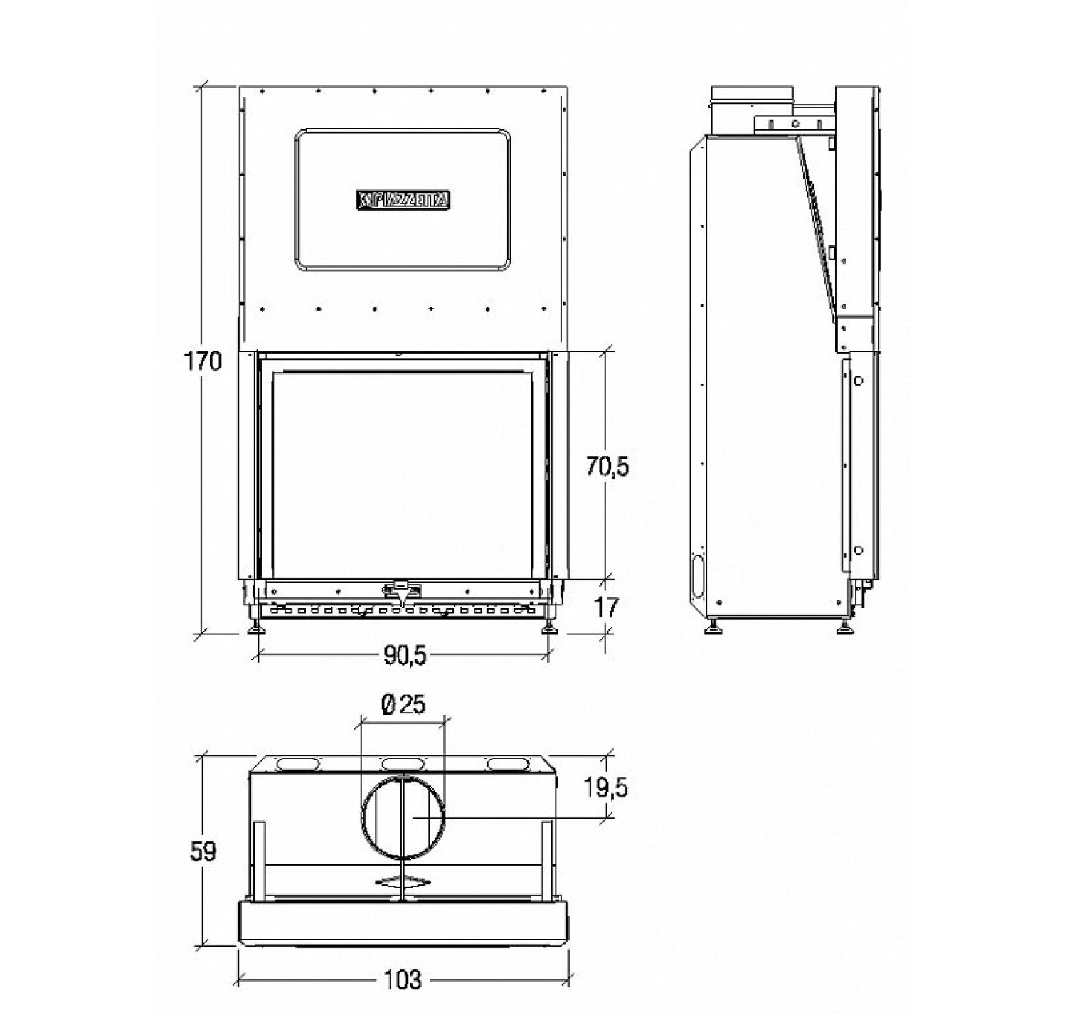 Каминная топка PIAZZETTA ME 90/70 произведена в Италии.