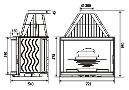 • Система вторичного дожига способствует полному сгоранию дров, при этом повышая КПД
