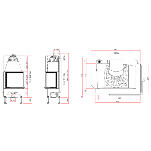 - Патрубок под диаметр дымохода 18 см.
