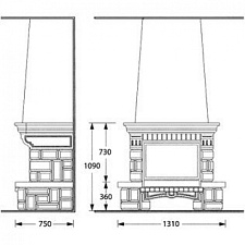 - Ширина очага: 71-80 см
