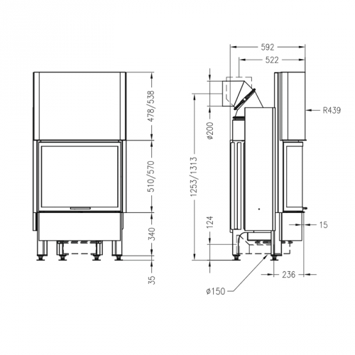 - Проем дверцы, мм: - 834-510x570