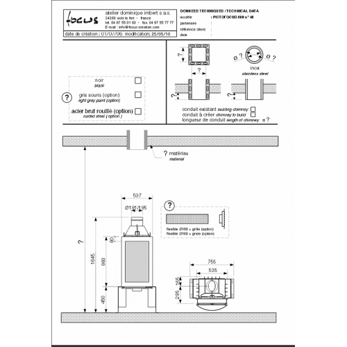Выпуклая пирокерамическая стеклянная дверца на петлях, вес 85 кг, топка из стали, съемная чугунная решетка. Контролируемая циркуляция воздуха в самой раме предотвращает загрязнение стекол. Рама обеспечивает изоляцию от окружающих поверхностей, матовая черная краска высокой термостойкости. Верхние и нижние вентиляторы обязательны. Гарантирована эффективность при минимальной длине трубы (внутренней и внешней) в 4 м.