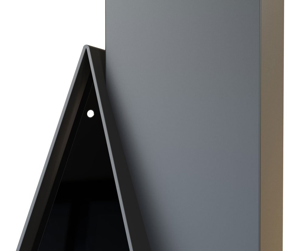 В зависимости от общего оформления интерьера каминной залы, вы можете выбрать наиболее подходящий цвет фронтальной облицовки. Любопытная треугольная форма камина отсылает наблюдателя к конструктивистским стилевым тенденциям прошлого века, получившим новое рождение в современном, а точнее даже футуристическом исполнении.