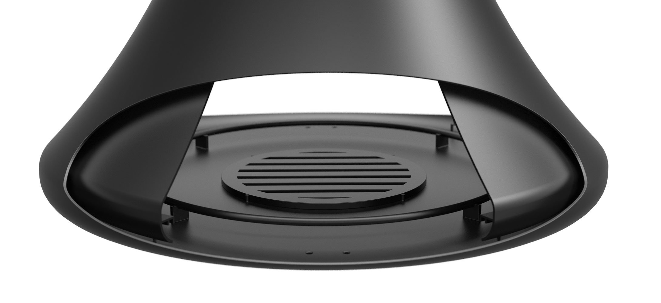 Центральный открытый подвесной двусторонний камин, без поворотного механизма. Цвет - черный.