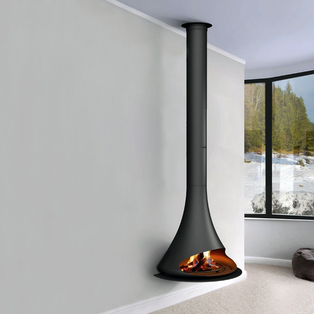 Современная модель камина Doria из новой коллекции компании Traforart выполнена в уникальном дизайне. Камин имеет форму элегантной вазы с вытянутым, утонченным горлышком, что особенно хорошо сочетается  с подвесной конструкцией модели. Смонтированный не в стену, а в потолок, камин Traforart приобретает поразительную визуальную легкость и невесомость. Всегда актуальный черный цвет облицовки, а также простота, сдержанность исполнения и отсутствие каких-либо лишних деталей рождают особо тонкий стиль и шарм. Общее дизайнерское оформление камина Traforart, несомненно, можно отнести к футуристическому стилю хай-тек. В дополнение к модели предлагается оригинальный дровник-трансформер, который подстраивается под камин в различных модификациях (опция).