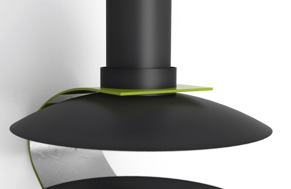 Эксклюзивный центральный подвесной камин, без системы вращения, с декоративным элементом в любом цвете палитры RAL.