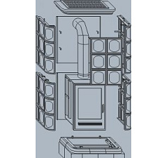 • > Камины поставляются с решетками, дымовыми контейнерами, клапанами, чугунными пластинами для настенной и угловых моделей.