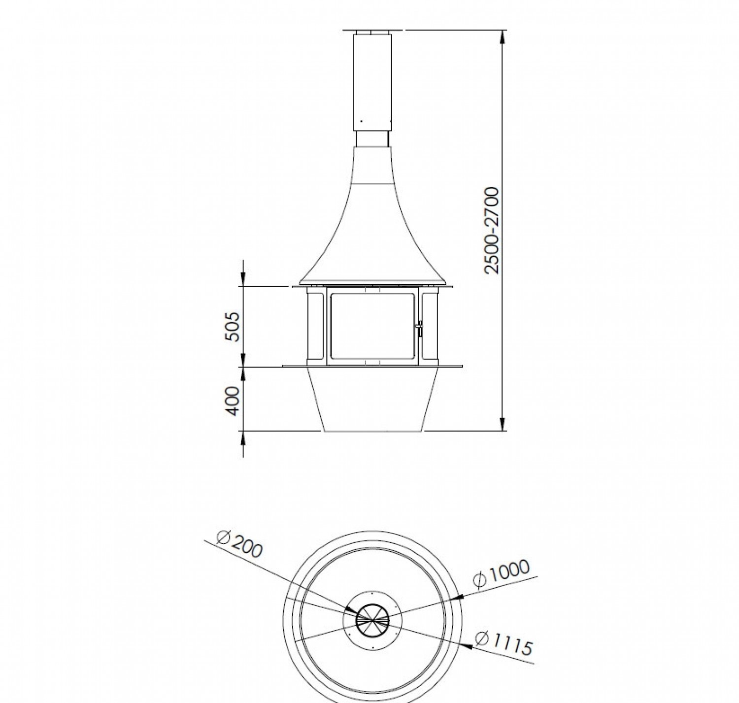 Центральный круглый дровяной камин Lorena центральной конфигурации для создания стильных изысканных интерьеров и оптимального отопления помещений.