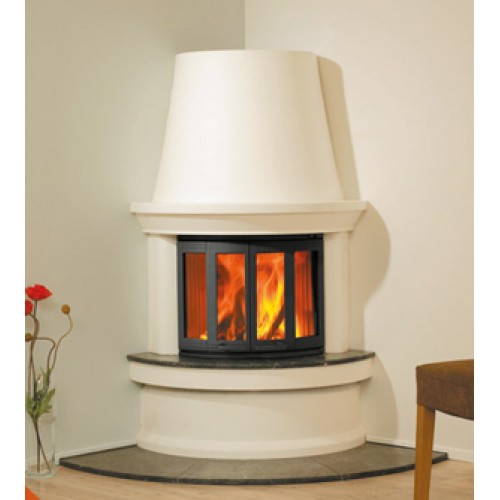 Корпус полукруглой формы хорошо вписывается в традиционно "мертвую" зону угла. Топка изготовлена из чугуна и имеет тепловую эффективность 78%.