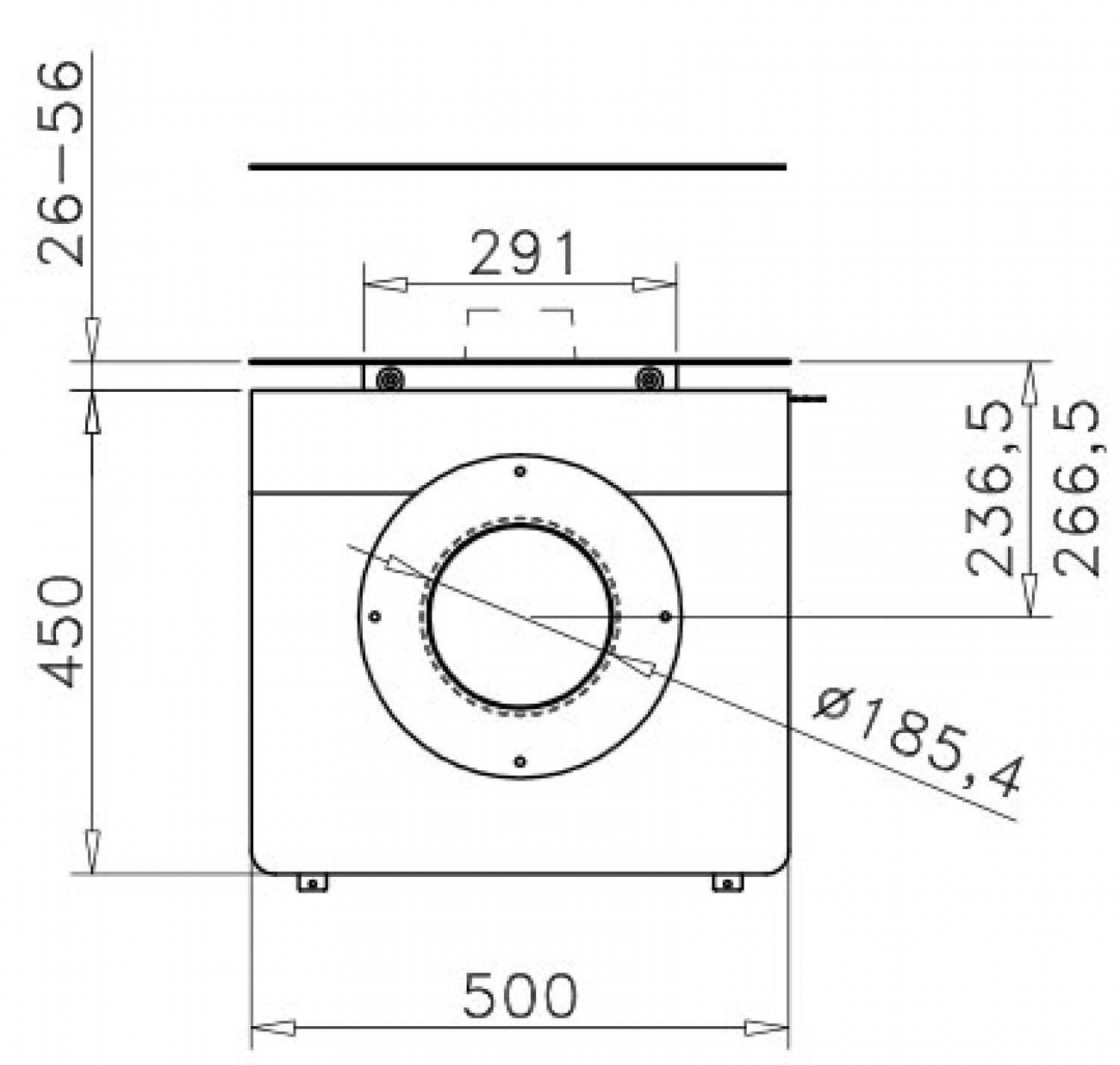 Фронтальный (пристенный) металлический камин. Дрова: 30 см.
