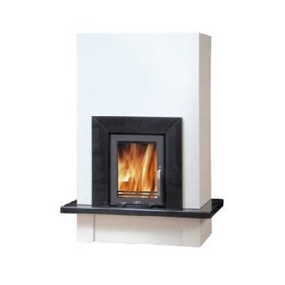 Простой прямоугольный корпус камина украшен черным гранитом и небольшой столешницей. Окно топочной дверцы — прямое и выполнено из стеклокерамики, с температурным порогом в 800 градусов Цельсия. Конвекционный короб — белого цвета. тепловая эффективность достигает 80%. Камин ABX Puris — хороший вариант для отопления загородного дома, дачи или городской квартиры. Особенно рекомендован для современных интерьеров.