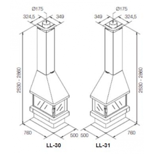 Модельный ряд каминных топок LL Calor отличается многообразием размеров и методом открытия дверцы (гильятина и боковое). Возможен забор воздуха с улицы.