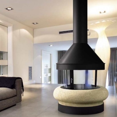 Камин Zeus, центр., со стеклом, черн. (Traforart)