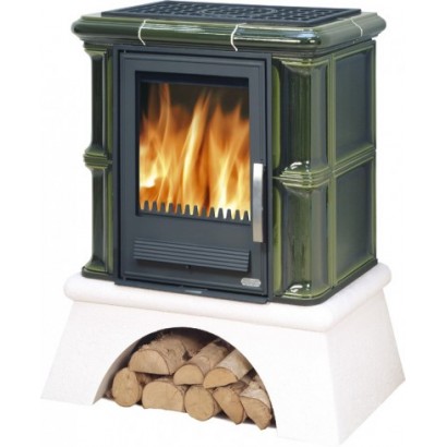 Кафельная печь Bavaria K - вставка комбо, прямой цоколь бутылочное стекло, с теплообменником (6,9 кВт в воду)