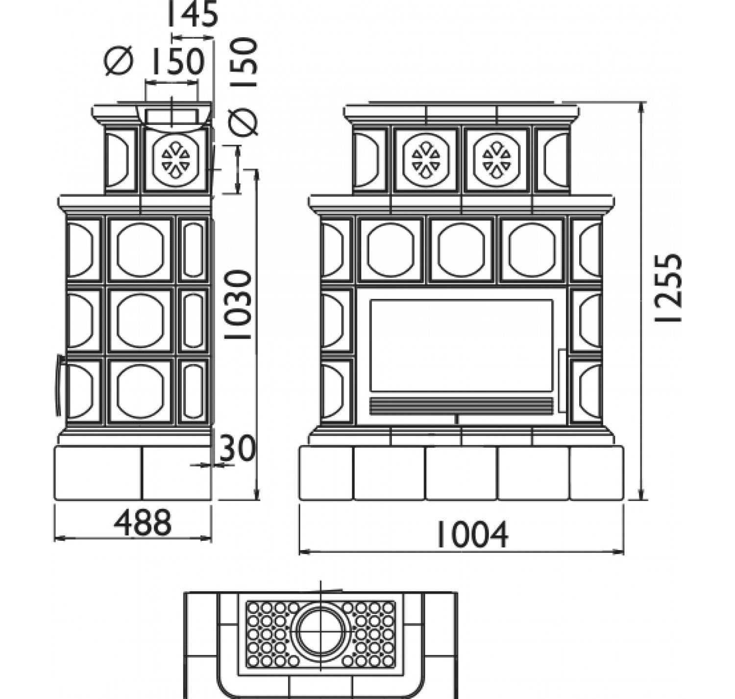 Кафельная печь Karelie 10 кафельный цоколь, с теплообменником