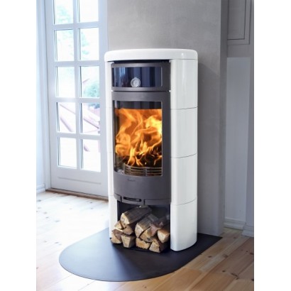 Печь-камин Contura 660К облицован песочной матовой или белой глянцевой плиткой из керамики.Серый или черный корпус камина (топка), оснащен поворотной колосниковой решеткой и выдвижным зольником.