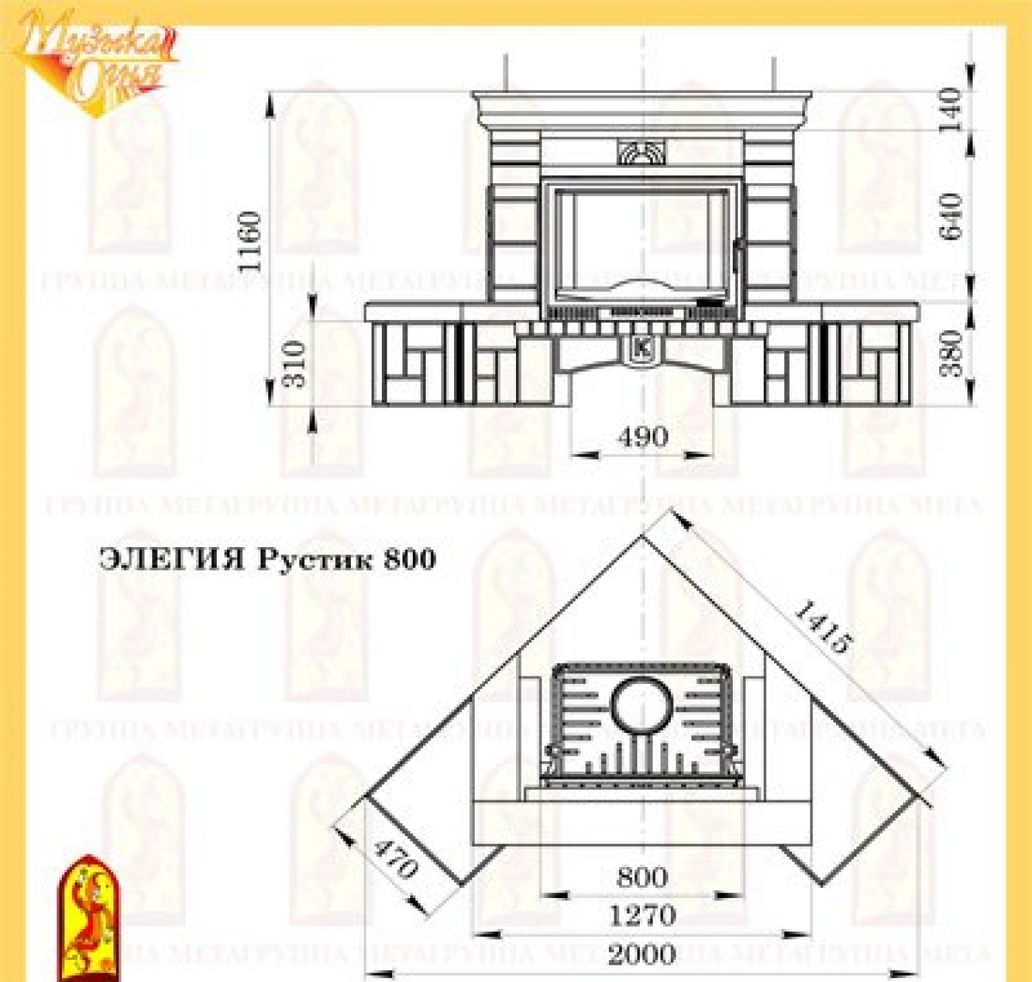 Мета элегия рустик 800 с топкой эльба аква 800ш