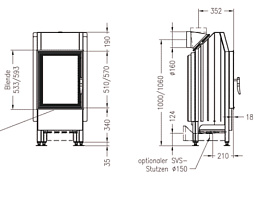 Благодаря специальной системе обогревания с конвекционными трубами внутри топки, тепло распространяется молниеносно, как только в камине будет разведен огонь. Благодаря талькомагнезиту и дополнительному нагревательному магазину под колпаком печи, печь сохраняет тепло еще в течение многих часов после того, огонь не будет гореть. Удачное сочетание характерных качеств камина и талькомагнезита. Передняя часть камина легко открывается и закрывается. Вытяжной короб для золы с крышкой облегчает чистку.