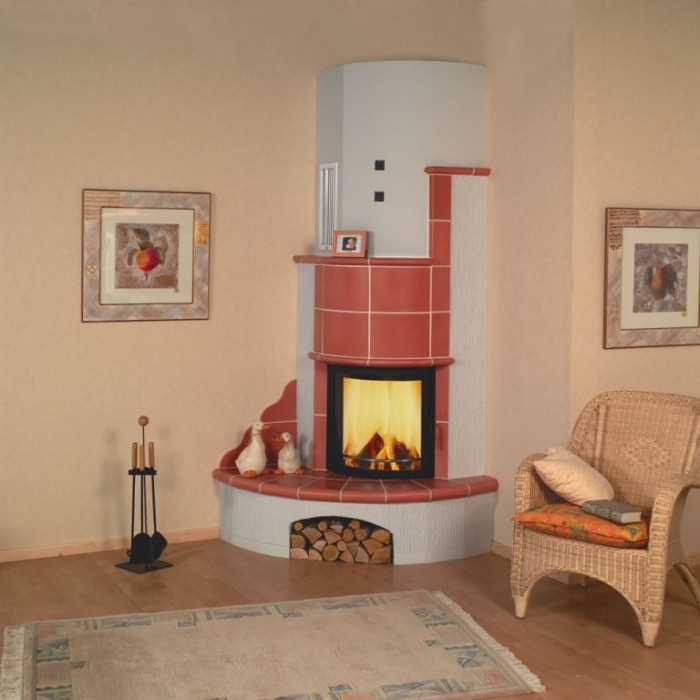 Камин, оформленный глазурованными изразцами, придаст Вашему дому индивидуальный и неповторимый вид. После насыщенного дня можно удобно расположиться возле камина и слушать как потрескивают дрова в очаге. Топка с выпуклым жаропрочным стеклом. Вместительная ниша для дров.