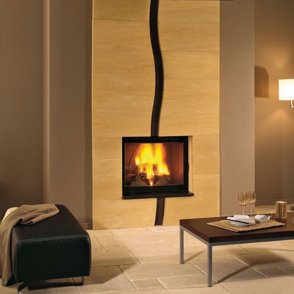 Встроенный камин. Твердый бежевый камень под мрамор. Под закрытые и открытые топки.