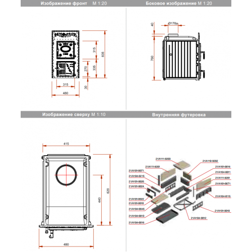 • ? двойное или тройное остекление обзорного стекла для уменьшения интенсивной и неуправляемой теплоотдачи путём излучения тепловой энергии, тем самым направление её в дымооборотные каналы, где тепловая энергия накапливается и более продолжительно и эффективно отдаётся в помещение.