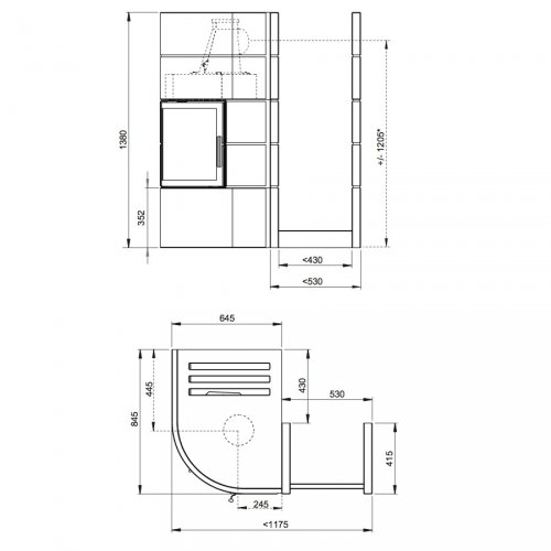 Корпус модели имеет современные обтекаемые формы и открытую дровницу. Угловой вариант расположения камина в помещении очень удобен, так как позволяет занимать "мертвую зону" угла и совсем немного полезной площади помещения.