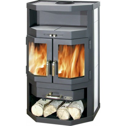 Чешская каминная модель ABX Helsinki — замечательная печка для дачи или дома, способная отапливать до 180 куб. метров жилой зоны. Выполненная из листовой стали, она имеет герметичный корпус, разделенный на три функциональные зоны: зону топки, ящик для дров и открытую нишу для дров. Топка — закрытого типа, с красивым двухстворчатым окном призматической формы.