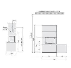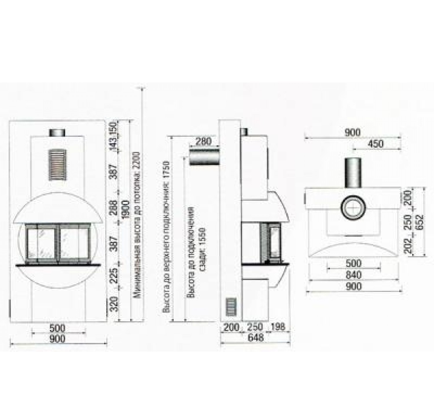 Пристенная печь-камин с верхним вариантом подключения.