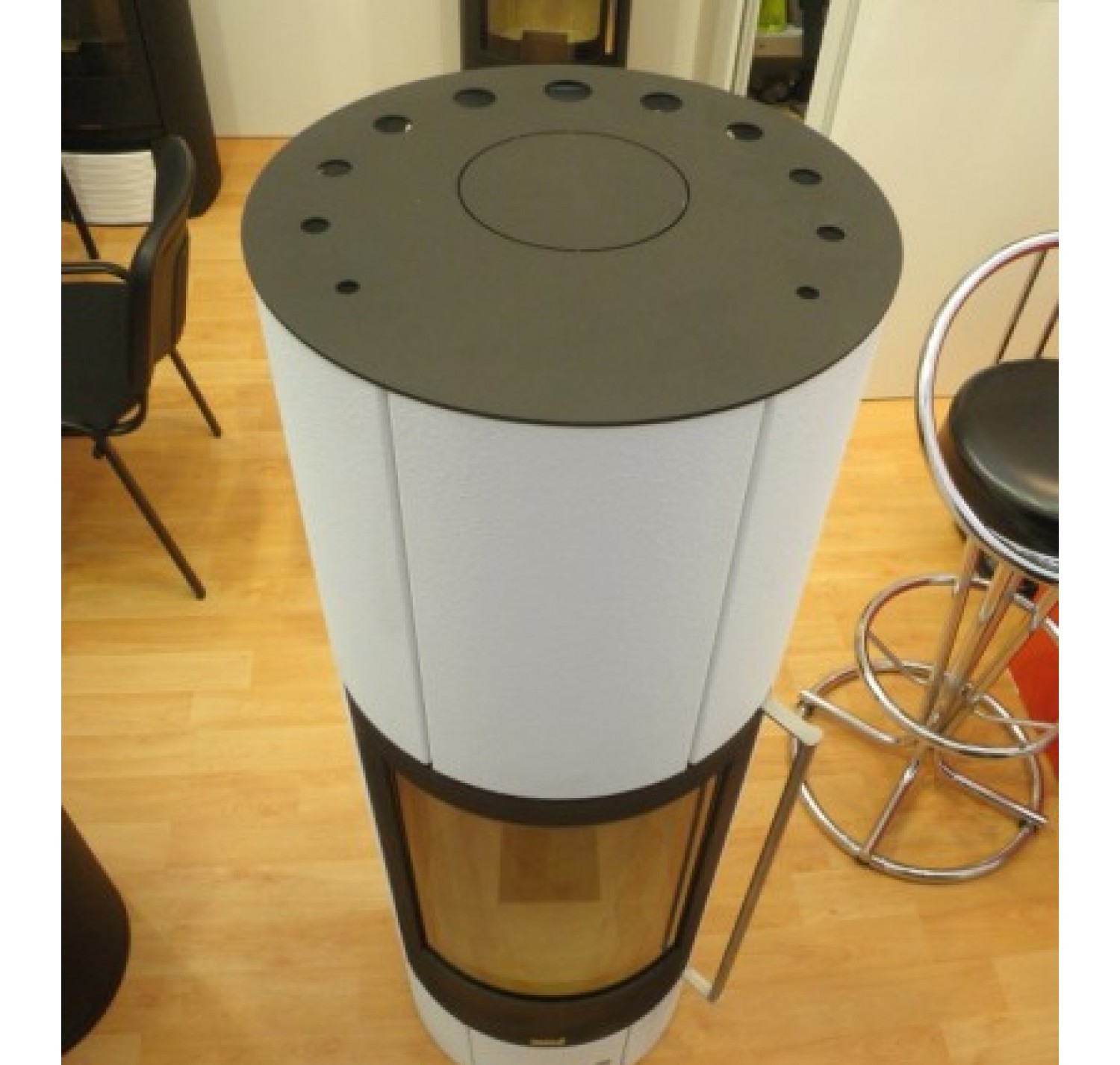 Топка представленной печи изготовлена из стали с большим стеклокерамическим стеклом, выдерживающим нагрев в 700 градусов С. Имеются системы двойной дожиг и чистое стекло, функция медленного горения.