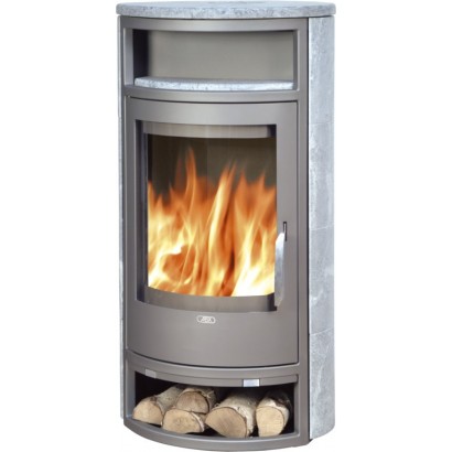 Также в этой печи предусмотрены система двойного дожига, система чистое стекло и функция медленного горения. Под топкой внизу расположена ниша для хранения дров, а над топкой — ниша для разогрева пищи.