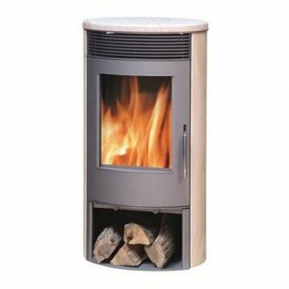 Корпус данной печи цилиндрической формы, поэтому она может стоять в углу или быть просто у стены. В качестве материала изготовления камина использовалась листовая сталь. Облицовка может быть из природного камня талькохлорита либо из песчаника.