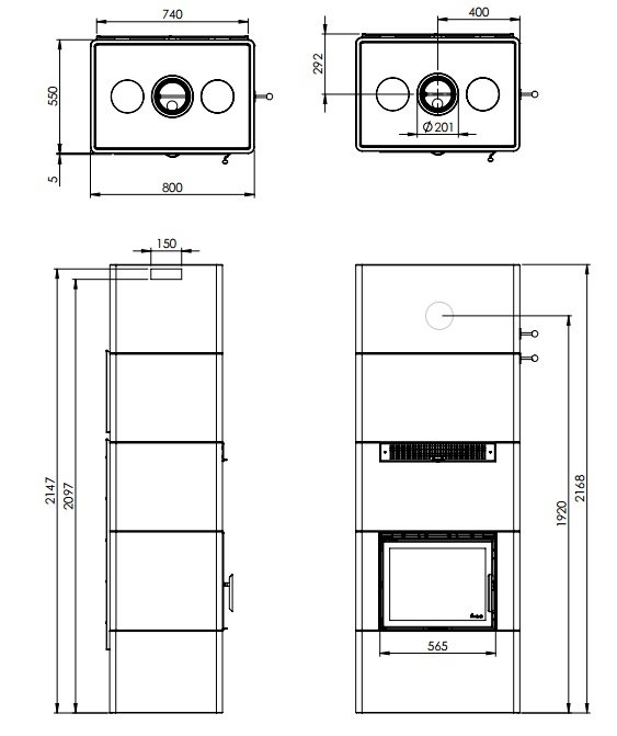 - Диаметр дымохода, (мм) 150