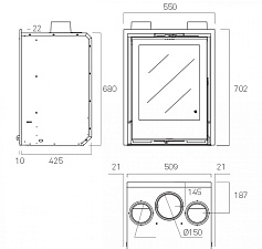 • Топка с трехсторонним видом на огонь, 3 стекла: на фасаде + справа и слева