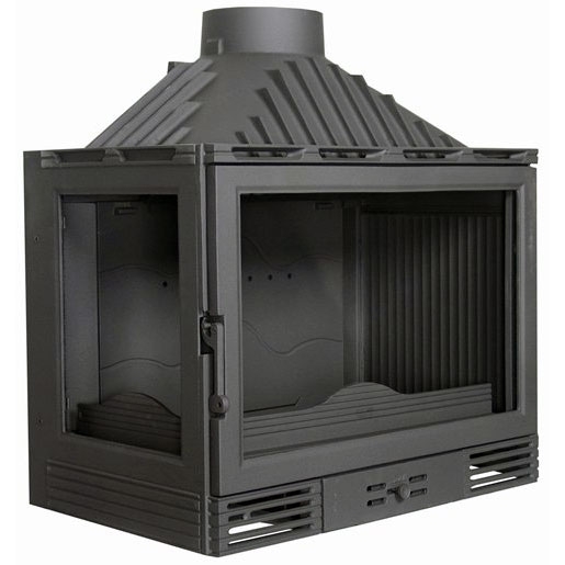 Чугунная каминная топка с заслонкой. Стекло слева.