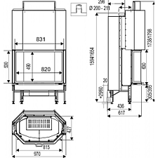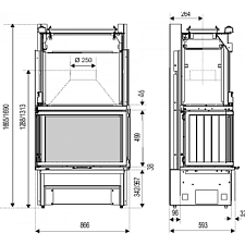 - Топка с трехсторонним видом на огонь, 3 стекла: на фасаде + справа и слева