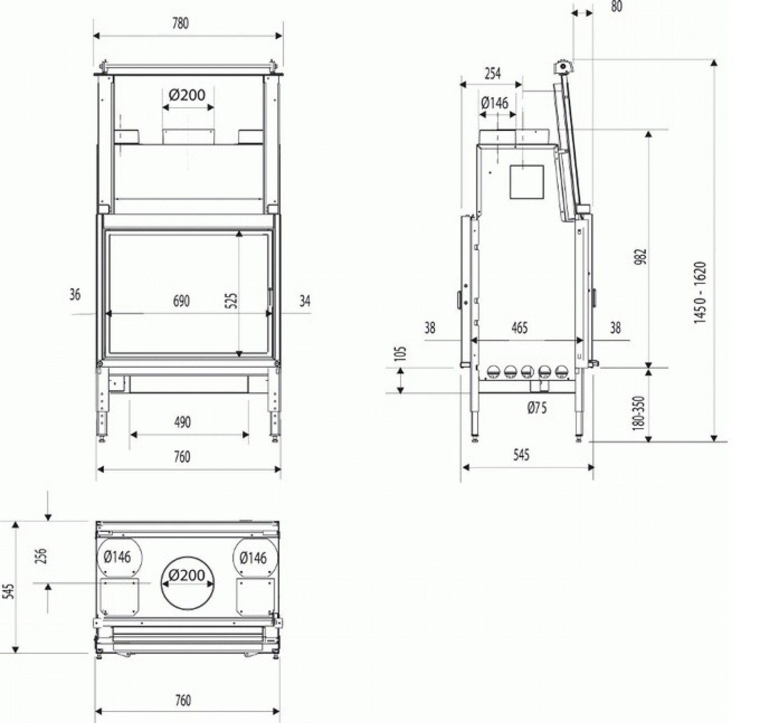 • Диаметр дымохода, (мм)
